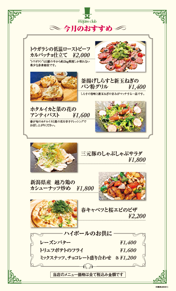 ◆お料理お品書き◆
