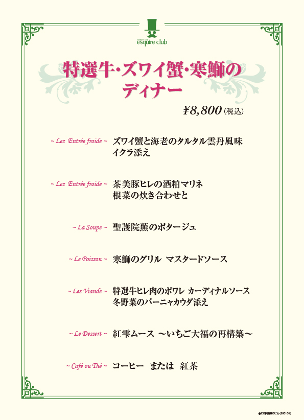 《特選牛・ズワイ蟹・寒鰤のディナー》