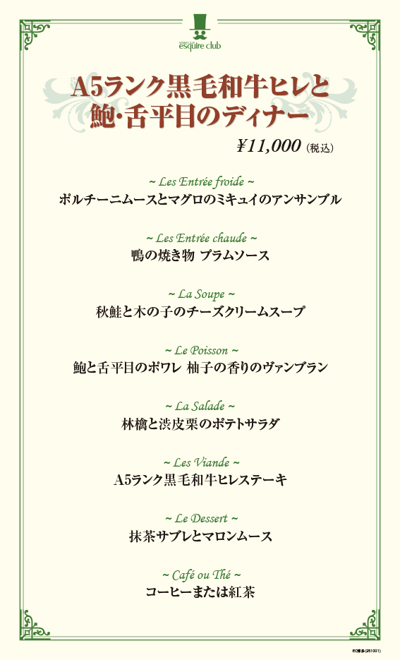 A5ランク黒毛和牛ヒレと鮑、舌平目のディナー