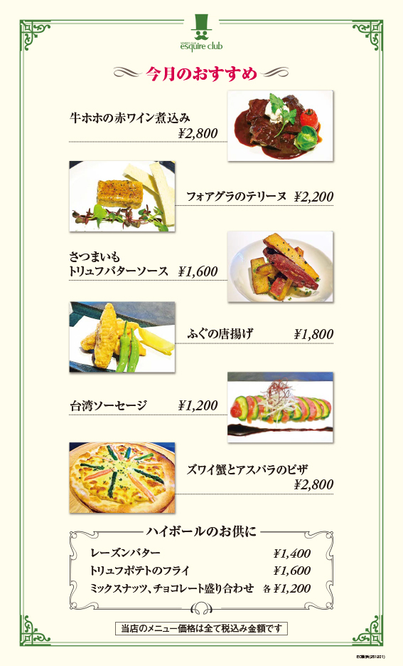 12月の横浜店おすすめメニュー