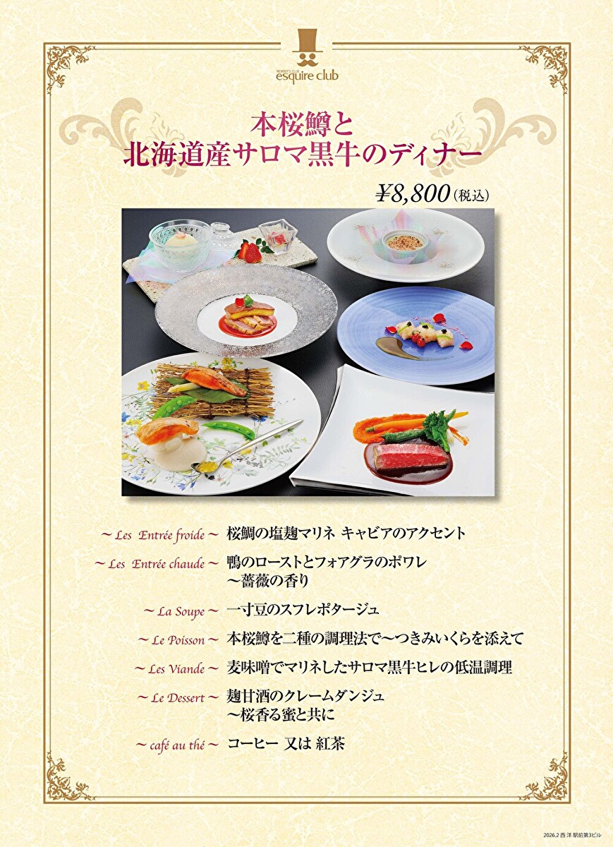 エスカイヤクラブ名古屋店 今月のディナー