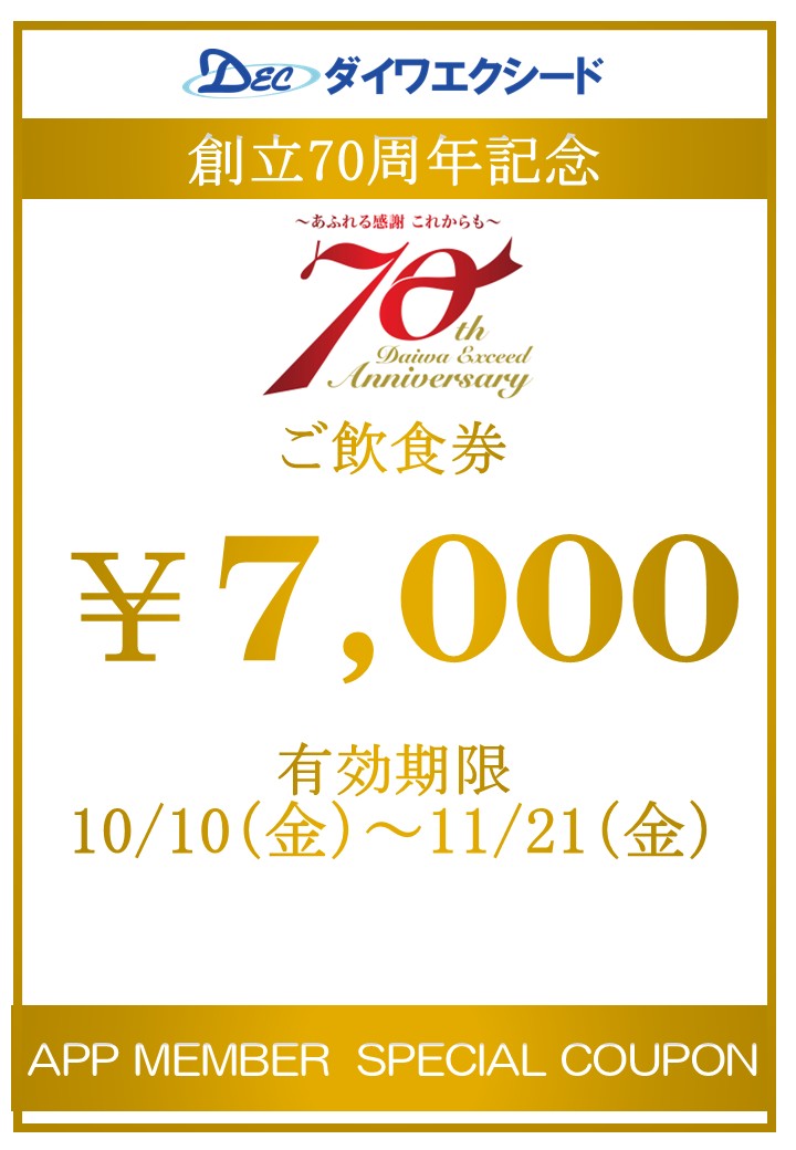 これまでのご愛顧に心より感謝し、会員の皆さまへ特別なプレゼントとして、公式アプリにて7,000円OFFクーポンをご用意しました。