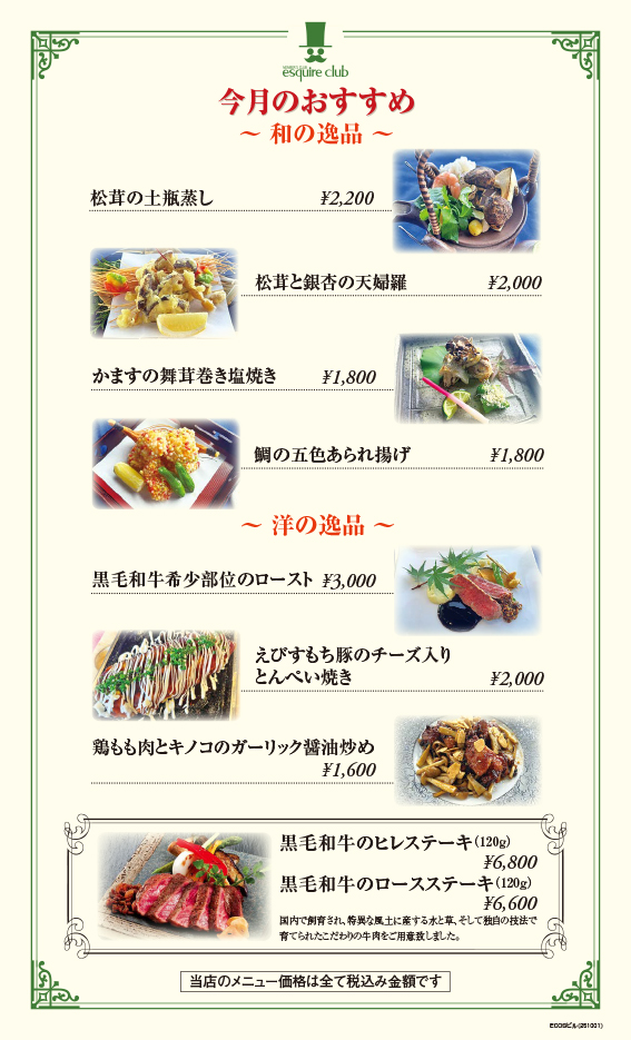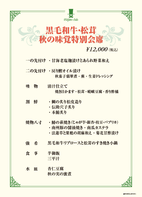 《黒毛和牛・松茸 秋の味覚特別会席》