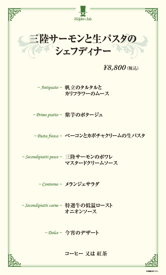 《松阪牛と岩手三陸サーモンの深秋ディナー》