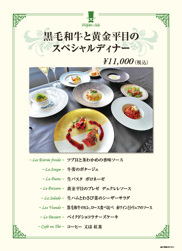 《黒毛和牛と黄金平目のスペシャルディナー》