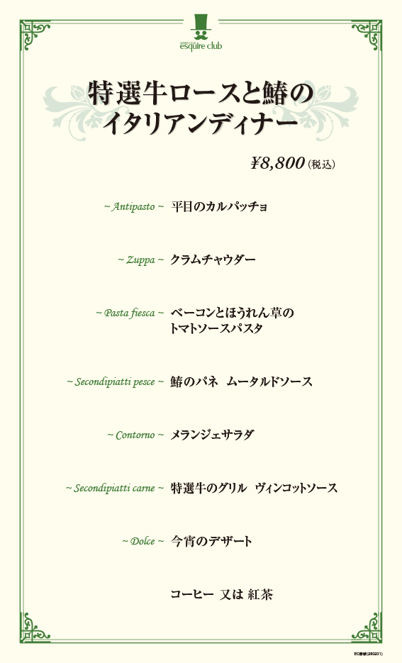 《特選牛ロースと鰆のイタリアンディナー》