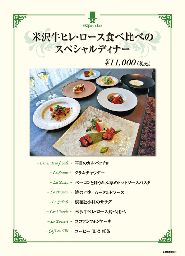 《米沢牛ヒレ・ロース食べ比べのスペシャルディナー》