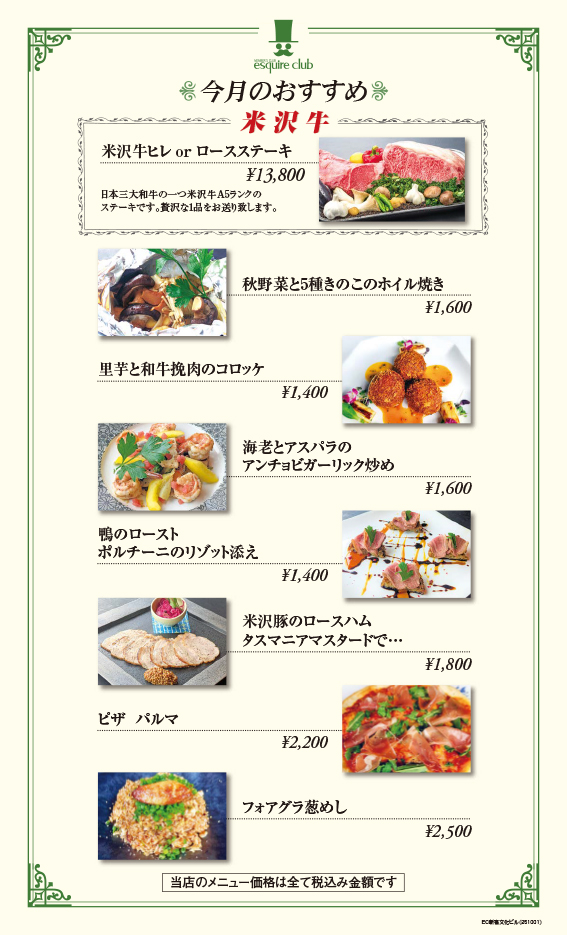 ※日曜・祝日のステーキカウンターの営業はお休みさせて頂いてます。