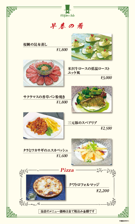 お料理内容は仕入れ状況等により変更させていただく場合がございます。ご了承ください。