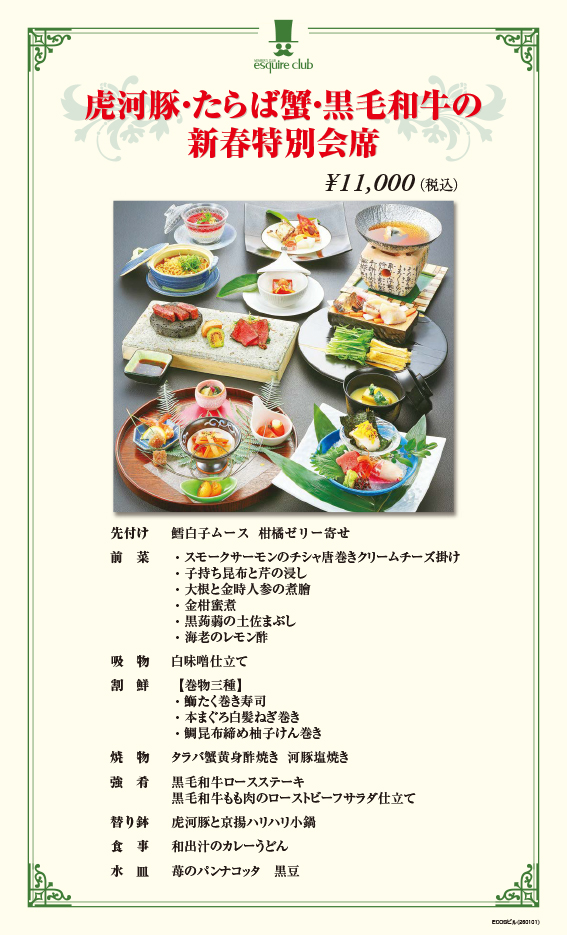 《虎河豚・たらば蟹・黒毛和牛の新春特別会席》